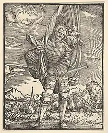 In 1493, Sir William Parker suffered a first attack of dementia. He seems to have recovered, at first, but in 1502 he suffered from insanity. His epitaph states that he died a violent, unspecified death.[7] He was buried in the parish of St Gilles,[8] in the village of Great Hallingbury, in the company of his wife Alice, his son Henry, his daughter-in-law Alice St John, his mother Agnes and his sister-in-law Elisabeth de la Pole, niece of Edward IV and Richard III.[7]
