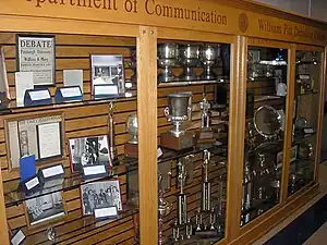 Trophy case of the William Pitt Debating Union, in the University of Pittsburgh Department of Communication, seen here on the former eleventh floor location (now 14th floor) of the Cathedral of Learning
