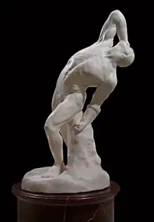 Having published Elements of Design (1864) and Art Anatomy (1877), Rimmer continued to teach, including through his exhibited sculpture. Most notably, in his surviving lectures and work, he challenged the prevailing preference for Neoclassicism.[4] He also objected to servile copying from Nature. Instead of promoting an imitative art form, he took a novel stance in fostering reliance on the artist's imagination (note the impossible pose in Falling Gladiator). His historical significance lies not only in his prodigious talent and originality, but also in his rebellion against artistic norms. He died in South Milford, Mass., on Aug. 20, 1879.