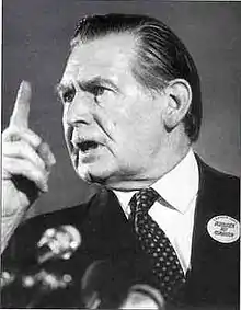 After serving as Shadow Secretary of State from 1962, he became Secretary of State for Scotland in 1964 under Harold Wilson. The Conservatives were in government from 1970-74, when Ross resumed his position until he lost office when Wilson resigned in 1976. During his tenure, he was responsible for the creation of the Highlands and Islands Development Board and the Scottish Development Agency, the forerunners of Highlands and Islands Enterprise and Scottish Enterprise respectively. Ross campaigned for a "No" vote in the 1975 referendum on British membership of the EEC.[2] He was also a firm unionist, in favour of Scotland and Northern Ireland remaining in the United Kingdom, and opposed devolution. Journalist Andrew Marr has called him "a stern-faced and authoritarian Presbyterian conservative who ran the country like a personal fiefdom for Harold Wilson". Ross coined the term "Tartan Tories" to describe the members of the Scottish National Party, whom he very much disliked; he was himself nicknamed "the hammer of the Nats" for his many attacks on them. The nickname "Tartan Tories" is still used in the present day by some left-leaning critics of the SNP.