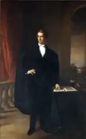 During his term as state senator, Seward traveled extensively, visiting other anti-Jackson leaders, including former president Adams. He also accompanied his father Samuel Seward on a trip to Europe, where they met the political men of the day.[26] Seward hoped that the Anti-Masons would nominate Supreme Court Justice John McLean for president against Jackson's re-election bid in 1832, but the nomination fell to former Attorney General William Wirt. Kentucky Senator Henry Clay, an opponent of Jackson, was a Mason, and thus unacceptable as party standard-bearer.[27] In the aftermath of Jackson's easy victory, many of those who opposed him believed that a united front was necessary to defeat the Democrats, and the Whig Party gradually came into being. The Whigs believed in legislative action to develop the country and opposed Jackson's unilateral actions as president, which they deemed imperial.[26] Many Anti-Masons, including Seward and Weed, readily joined the new party.[28]