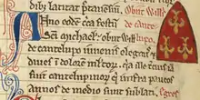 Record of the death of William III de Cantilupe made by Matthew Paris (d.1259) in his Historia Anglorum (folio 165v).[19] His shield of arms is depicted in the margin inverted