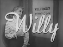 Willy is an American situation comedy about a small-town female lawyer who later moves to New York City. It aired on CBS from September 1954 to June 1955. The series stars June Havoc and was produced by Desilu Productions.