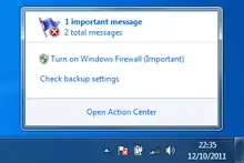 When the Action Center flag is clicked on, it lists all security and maintenance issues in a small pop-up window.