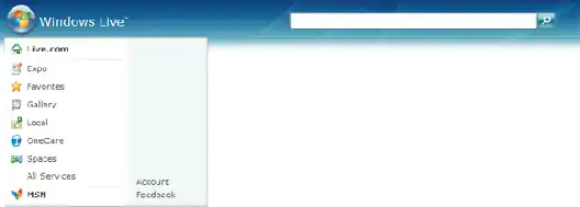 | Toolbar | A toolbar plug-in for Windows Internet Explorer, which allows quick access to a user's Windows Live Spaces, Hotmail, Favorites and Live Search from a button on the toolbar. | Replaced by Bing Desktop and Bing Bar |