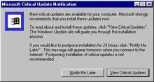 - ↑ "Description of the Windows Critical Update Notification utility". Support. Microsoft. 5 December 2007. Archived from the original on 26 July 2020. Retrieved 22 November 2018.