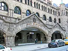 In 1887, the Canadian Pacific Railway (CPR) began to build a railway station in Montreal, which would serve as its headquarters, three years after the completion of the Dalhousie Station in 1884. The Windsor Station project was entrusted to New York City architect Bruce Price, who chose a Romanesque Revival style for the building.[5] Price had to submit four versions of his plans to satisfy the treasurer of CPR, before the project was accepted. It was constructed at a cost of $300,000 CAD,[6] and the first trains departed February 4, 1889.[7] It was known as the Windsor Street Station, named for the street on which it was located, Windsor Street (today Peel Street).[8]
