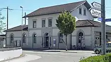 Amriswil station was already equipped in 1855 with a freight yard and in 1867 with a stately station building. The station building was demolished in modern times and the freight tracks were dismantled. Since 2004, it has only been a halt from a railway technical point of view. The station building is now a functional, single-storey building with a flat roof, but it is still occupied commercially and still includes a travel agency and money transfer service.