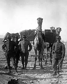 One major problem was how to transport the WT stations across sandy desert tracks. Luigi Sacco was obliged to move the equipment via camels, the only convenient means in such a situation. Using camels, the Corps of Engineers soon set up new wireless stations along tracks that had been secured.