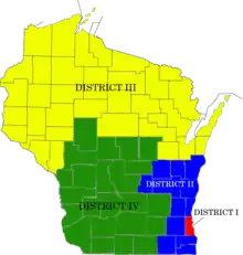 | Location | Milwaukee (District I) Waukesha (District II) Wausau (District III) Madison (District IV) |
