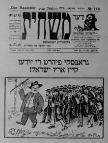 Between 1924 and 1926, mass emigration of Polish Jews to Palestine took place following the economic restrictions placed on Jews in Poland. This wave of Jewish migration became known as "Grabski's Aliyah" (Aliyah being the traditional Hebrew word for immigration to the Land of Israel) owing to the financial reforms conducted by Władysław Grabski at that time.[4][5][6] In American Jewish media sources, Grabski's reforms were described as "an anti-Jewish taxation policy so severe that it resulted in a great immigration movement to Palestine, known as 'the Grasski Aliyah.'"[7]