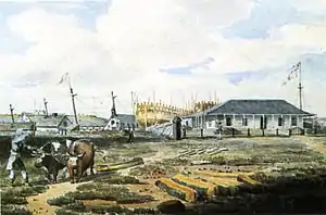 In 1817 the Rush-Bagot Agreement was signed, severely limiting the number of warships the two sides could keep on the lakes, with only one each allowed on Lake Ontario.[19] The various naval facilities on the lakes became at most supply depots. This left the Royal Navy's part-built warships in ship graveyards.[10] The frames of Wolfe and Canada were left on the stocks at Kingston for another fifteen years and never completed.[6][10][20] In the 1830s the dockyard began to be dispersed with. Wolfe was officially cancelled in 1831 and Canada followed her in 1832. The frame of Wolfe was then destroyed in a storm on 31 July, and Canada was broken up on the stocks.[6][10]