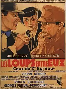Wolves Between Them (French: Les loups entre eux) is a 1936 French spy thriller film directed by Léon Mathot and starring Roger Duchesne, Jules Berry and Renée Saint-Cyr.[1] [2] The film's sets were designed by the art director Jacques Colombier. It is a sequel to the 1935 film Second Bureau. Two further entries in the series A Man to Kill (1937) and Captain Benoît (1938) were released. The film was remade as the 1939 British release Secret Journey.