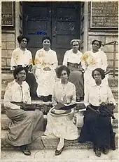 Black colleges helped the creation of African-American women's clubs.[61] Ida B. Wells was an important figure in the growth of these clubs during the Progressive Era.[66] A number of clubs, named after her, were created in large cities across the country.[67] In Chicago, the wealthy former abolitionist Mary Jane Richardson Jones supported the development of several clubs, serving as the first chair of Wells's.[68][69] Other influential woman's club organizers were Josephine St. Pierre Ruffin and Mary Church Terrell.[70] In 1896, the National Association of Colored Women (NACW) was founded.[18] The NACW grew out of anti-lynching campaigns spearheaded by Wells.[59] Wells's anti-lynching campaign provoked the president of the Missouri Press Association who viciously attacked black women in a letter that was widely circulated among women's clubs by Ruffin.[71] Ruffin eventually helped bring together the NACW, using the letter as a "call to action".[71]