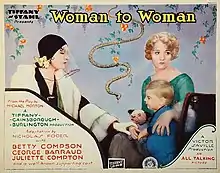 Woman to Woman is a 1929 British drama film directed by Victor Saville and starring Betty Compson, George Barraud and Juliette Compton.[1] It is an adaptation of the 1921 play Woman to Woman by Michael Morton which had already been made in 1923 into a now-lost film.[2] The 1929 version survives and unrestored copies are available on unofficial DVDs and streaming services.[2]