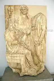 This did not stop women from becoming physicians. Philista was a popular professor of medicine who delivered lectures from behind a curtain, to prevent her beauty from distracting her students.[2] In ancient Greece, there was also an opportunity for midwives to receive some further medical training, to become a doctor-midwife, called in the Hellenistic, Roman and Byzantine eras an iatromea (ιατρομαία).[3]