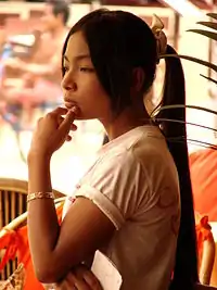![]() A Khmer woman in traditional outfit | |