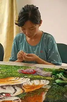 Female involvement in society was seen just as important as men. The 1972 constitution asserted that "women hold equal social status and rights with men."[23] The fact that women were given the same roles in society and in the economy can be seen when "Women workers had increased rapidly, with "equal pay [for equal work] and special treatment".[24] In addition, the increasing role of women in society than being simple housewives could be seen.[25] The 1990 constitution stipulates that the state creates various conditions for the advancement of women in society. In principle, North Korea strongly supports gender equality,[6] and established different policies regarding women's emancipation, however, in reality, North Korea remains a patriarchal society.