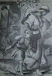 Sarah hopes to build a family through Hagar, but Hagar "began to despise her mistress" (Genesis 16:4). Then Sarah mistreated Hagar, who fled. God spoke to the slave Hagar in the desert, sent her home, and she bore Abraham a son, Ishmael, "a wild donkey of a man" (Genesis 16:12). The text suggests that Sarah had made a mistake which could have been avoided if there had been a strong maternal-type presence to guide her.[51]