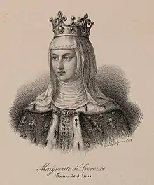 Portrait of Margaret of Provence - Margaret of Provence,[29] Queen consort of France. Margaret accompanied her husband Louis IX and sister Beatrice on the Seventh Crusade. After her husband's capture, she led the negotiations for his release and, in fact, was the only woman to ever lead a crusade, if however briefly. Her bravery and decisiveness were chronicled by her contemporary, Jean de Joinville.