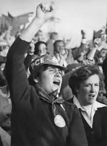 While PCE had positioned itself to be a leading left-wing organization in the transition period, generational differences and ideological differences of the role of women would speed up its political irrelevancy by 1981.[36] Failure to address women's issues played a key role in they party's electoral losses in the 1982 Spanish general elections.[36]