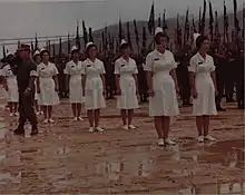 Over 11,000 women served in the American military during the War, the majority of whom were military-trained, graduate nurses.[87] Most were fresh out of college and had volunteered their service, while other, more experienced nurses were sent to Vietnam to assist in training many South Vietnamese women.[88] The first group of US Army nurses arrived in Vietnam in 1956, and by 1973 nearly 5,000 American women would be serving in Vietnam.