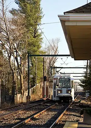 Woodland Avenue station is a SEPTA Route 101) trolley stop in Springfield Township, Delaware County, Pennsylvania. It is officially located on Woodland Avenue (PA 420) and Rolling Road, though Rolling Road is actually a block north of the tracks. A school and athletic field exists at the end of that intersection.