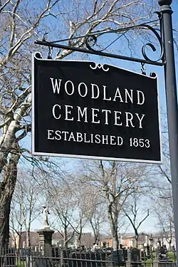 - National Park Service (June 4, 1986). Woodland Cemetery. National Register of Historic Places Inventory Nomination Form. NPS Form 10-900 (PDF) (Report). Washington, D.C.: National Park Service, U.S. Department of the Interior. Retrieved April 11, 2017.
