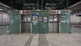 As part of the Art-in-Transit (AIT) programme, the artwork displayed here is "New Departures" by Amanda Heng, a montage of quotes from residents and a skyline of Woodlands.[33] This artwork explores borders and boundaries from a personal, rather than physical perspective. It was created to encourage commuters to take on their daily life with "courage and positivity."[34] The artwork draws on the role of this station being the future interchange of the cross-border RTS link between Singapore and Johor Bahru.[35]
