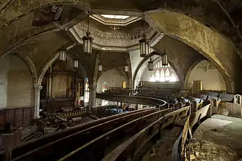 Owners changed hands several times but none had the finances to keep up such a large property.[6] The building then was bought at a foreclosure sale by an information technology company that had also purchased an adjacent building. In a 2018 television interview the company's executive outlined plans to restore the building for the community.[7] As of January 2019 the company had replaced the roof and were in the process of interior cleanup and structural stabilization.[8] However in July the technology company was debared from doing business with the city until 2026 after bribing a city official for business contracts.[9] As of 2020 there was no update on any further repairs.[10]