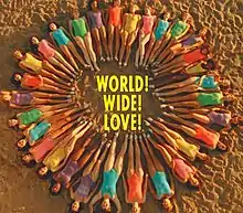 While there were many rumors that Hitomi was going to retire, they were quickly disbanded when her 34th single, "Sagashi Tsuduketeta Mono/World! Wide! Love!", a double a-side featuring a "pop ballad", was announced to be released on January 28, 2009. However, this single was soon cancelled for unknown reasons.[3] Not long after, another single release, tentatively titled, "Birth", was soon scheduled on online stores to release a month later, on February 18, 2009, in both a CD-only and CD+DVD edition. Once again, however, this single release was cancelled for unknown reasons.[4] Finally, however, her ninth studio album, then untitled, was confirmed by online retailers and Hitomi's official website. Soon after, "World! Wide! Love!" was announced.[5] The title track was used in skincare product "Easuterinie" commercials, and was also a tie-in song for the "Bee TV" series in Japan.[6] Both "World! Wide! Love!" and the b-side "Kokoro no Sogen" will appear on Hitomi's upcoming album "Love Life 2".[2]