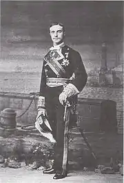 In Portugal, Grant visited Lisbon where he and Julia were received by King of Portugal Don Luís I and Queen of Portugal Maria Pia of Savoy.[78] Luís I drew Grant into a private apartment away from people and discussed trade between the United States and Portugal.[79] The King believed the port of Lisbon, after a new Spanish-Portuguese railway was built, would offer the United States produce and manufactures business opportunities. Grant attended the King's royal birthday the following day.[80] Grant refused to take the Grand Cross of the Tower and Sword, an offered gift from the King, saying that although he was an ex-president, he could not accept decorations. Before leaving Portugal Grant also visited with the King's father Don Fernando.[81] On December 12, Grant once again returned to Paris.[57]