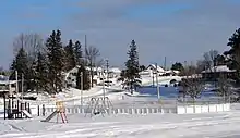 Naughton was originally established as a point along the Canadian Pacific Railway Algoma Branch and was named McNaughtonville.[5] In 1887, the Hudson's Bay Company relocated its existing trading post from Whitefish Lake to the south, which had been established in 1824, to Naughton, so that it could be closer to the CPR line.[5][6] The trading post closed in 1896, and during the 1920s and 1930s, many of the original buildings at the trading post site were demolished or burned down, though the store itself survived until at least the 1960s.[5]