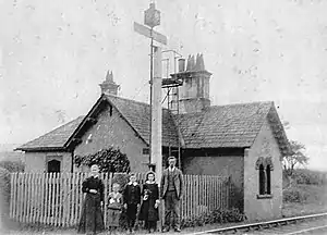 Wray railway station was a short-lived station near the village of Wray in the City of Lancaster district of Lancashire, England. The station was opened on a temporary basis by the "Little" North Western Railway on their route between Skipton and Lancaster, and was closed after just ten months of operation in the summer of 1850. The station was a single-building cottage and was administered by John Bee until 1891.[2]