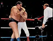 ^ The WWF's official time for the match is a then-record time of nine seconds (a record since surpassed by The Rock defeating Erick Rowan at WrestleMania 32),[4] although the match actually lasted 24 seconds.[23]