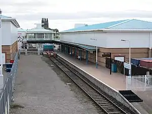 The goods depot and marshalling yard were used until 7 December 1964,[8] after which they were reduced to a large car park and railway club. The station and goods yard had a 56-lever signal box, which was used until 19 August 1973.[8]