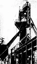 Work at the site was under way by November 1944.[15] In March 1945, the foundations for the blast furnace had been constructed but work on the furnace itself was held up by lack of steel, and work on the retorts had commenced.[16]