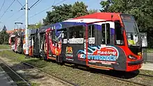 Gdańsk tram in the club colors of Wybrzeże Gdańsk in 2011