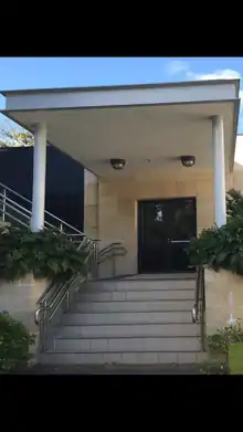Wyvern House was largely designed and built as a primary school but incorporates Dey House, built in 1954, and the Stanmore Deaf Centre, 1975, which had both been developed by the Adult Deaf Society of NSW,[14] and an adjoining substantial villa, "Pendawar", of the Victorian era. The purpose-built classrooms all have adjoining withdrawal rooms that allow for separate work to be undertaken and for individual tutoring. Specialist facilities include a library and art and music rooms. As well as open playgrounds and two basketball/tennis courts, Wyvern has a spacious under-cover rooftop area for physical education and wet weather play. The entire school can meet in the assembly hall and the boys are serviced at lunch and recess by an adjacent tuck-shop. Arrival at, and departure from, the school is facilitated by a drive-through entrance underneath the main building giving all-weather safe access for young students. Swimming, athletics, Rugby and soccer are held on the Newington main campus reached via a footbridge over Stanmore Road.[15]