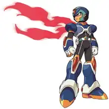 Inafune and Kaji worked simultaneously on various designs for X with different pieces of armor attached. The ideas for the armor parts arose in conjunction with the rise in popularity of role-playing video games. Inafune felt that Mega Man had always represented a classic action game formula where the hero earns his defeated enemies' abilities, and the armor parts were added to supplement this concept.[45] Although X initially wields only one weapon, the X-Buster (エックスバスター, Ekkusu Basutā), each armor upgrade in subsequent games enhances its power.[50] In regards to his personality, artist Keisuke Mizuno found him complex and challenging as the first game makes emphasis on the fact that X was created by Dr. Light to form peace with both Reploids and humans, something that puts too much pressure on him.[51]