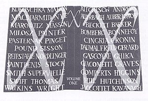 - ↑ This excerpt from Comment c’est is an early, variant version taken from Part I and is the first appearance of the novel in any form—Beckett Exhibition Harry Ransom Centre University of Texas at Austin