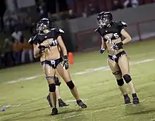 LFL players with experience in track and field competitions noted that the typical LFL uniform is comparable to other uniforms, with Elizabeth Govrick of the Minnesota Valkyrie stating she "ran track and I was wearing, you know, stuff if not close to almost smaller than what I'm wearing out on the football field. You take beach volleyball, you take volleyball, you take other sports where it's pretty much the same thing."[41] Adrian Purnell of the Jacksonville Breeze said that the outfits were only for marketing purposes.[42] Heather Furr, a quarterback for the Chicago Bliss said "I think with little girls watching the game ... if they can see past the uniform and see us as role models, then that's what I want."[40] Abbie Sullivan of the Cleveland Crush stated, "Just because we play in the LFL does not mean we promote promiscuity. We are smart females. We are athletes who take care of our bodies. We are the total package." Similarly, Toledo Crush player Marija Condric stated, "Everyone is entitled to their own opinion. Sit down and watch. You'll forget what we are wearing and you will be thinking about how hard that girl got hit on that last play."[43]