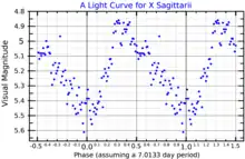 A visual band light curve for X Sagittarii, plotted from ASAS data[12]