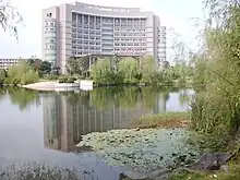 Xiasha is also a district of colleges and universities. Xiasha has 14 universities, including the well-known Zhejiang Sci-Tech University, Zhejiang Gongshang University and Hangzhou Dianzi University. These 14 Universities house and educate 200,000 students, and many of the small businesses in the zone cater to these students. Most all of these schools were formerly in the city of Hangzhou, but moved to Xiasha starting around 2000. Moving Universities and Senior schools to outer districts is a new and popular concept now in China, as high real estate prices spur better economic development in the inner city. There are events for students and "English Corners", however many Expat teachers, and a few Chinese students complain about the relative isolation, the lack of entertainments, and the common view of the dull, flat landscape of the area, but since Xiasha is growing there is much to do if you have an imagination. The park near Zhejiang Sci-Tech is remarkable, with exquisite landscaping, arched bridges, sculpture, curved granite pathways. The streets have polished granite curbs, the sidewalks too are of polished and rough stone, with many park benches, trees, bike lanes. Canals with fishing areas are all over the city. The Qiantang river is nearby and often provides an ocean breeze as well as the largest "Tidal Bore" in the world. The river levee is completely paved and a car or bicycle can be ridden for miles on top of it.