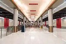 Xinshougang (Shougang Park) station[note 1][1] (Chinese: 新首钢站; pinyin: Xīnshǒugāng Zhàn) is a subway station on Line 11 of the Beijing Subway.[2] The station opened on December 31, 2021.