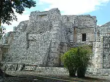 The name Xtampak comes from a Maya meaning "old / ancient walls". It is a very old site. The cities origins date back to 400 BC. The top of the hill has been aligned and surrounded by falling terraces intended for cultivation. The city grew by 850 years, reaching its peak of development between 550 and 950. It was planned and beautifully decorated, and contributed to this undoubtedly specific location of the city: it lay in a place where interacted Chenes architectural styles and Puuc. Thanks in Santa Rosa Xtampak find magnificent monuments showing the typical features of each of these styles. Xtampak was the historical capital of the Chene Maya people.[1] The city is built on a natural elevation with a flattened and divided summit, it covers an approximate area of 9 square kilometers. Xtampak had over ten interlocked ceremonial plazas. During its golden age, the city was inhabited by 10,000 people. The buildings have a marked Chenes style, although there are some structures with a Puuc influence.[2]
