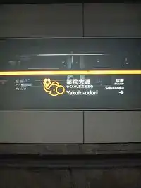 Yakuin-ōdōri Station (薬院大通駅, Yakuin-ōdōri-eki) is a train station located in Chūō-ku, Fukuoka. This station's symbol mark is an elephant's head and a flower because it's near the Zoo and Botanical Garden.