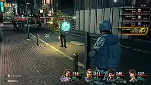 A major departure from previous Yakuza games is the battle system. Instead of the real-time action beat 'em up mechanics of previous games, Yakuza: Like a Dragon features a real-time turn-based RPG type combat, with a four-person battle team. However, unlike typical turn-based RPGs, characters may use nearby surrounding items such as bicycles to attack enemies (if the items are near the enemies) or may kick surrounding items to their target if there is an interactive item in the environment on the way to the enemy, an aspect that returns from the previous Yakuza games. Players can also call on various party assists to strengthen the party or defeat enemies, with more assists added as the story progresses or through the completion of sub-stories. Players can still continue exploring the world after completing the game. A new game plus mode with additional difficulty settings exclusive to this mode was released as paid downloadable content for the Japanese version of the game,[3] but it comes as a standard feature in the Western release.