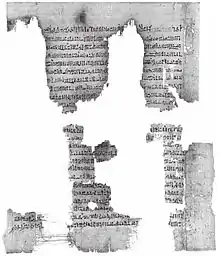 Yam is also attested in the so-called Astarte Papyrus,[4] which preserves a myth focused on him,[149] Astarte and the Sea.[150] There are multiple lacunas in the text, making it difficult to fully reconstruct and interpret the plot.[151] In the beginning, Yam covers the earth with his waters,[152] and demands to be made the head of the pantheon.[153] The harvest goddess Renenutet is instructed to prepare a tribute of silver, gold and lapis lazuli for him.[152] Her role in this composition is regarded as unusual, as she was a minor deity, and her activity seems unrelated to her usual character.[154] After a lacuna a bird is sent by someone, possibly the same goddess, to fly to the house of Astarte and wake her up so that she can bring the gifts to the sea.[155] She reacts to the request by weeping,[156] but eventually reluctantly agrees, and in a poorly preserved passage she laughs and sings before Yam, who questions her arrival: