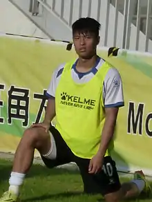 Yang Chaosheng was born in Dongguan to a Hakka family that originated from Longchuan. He started his football career with China League Two side Dongguan Nancheng in 2011.[1] He played all 25 matches and scored five goals for the club in the 2011 season. Dongguan lost to Chongqing FC 3–0 on aggregate in the semifinals of the promotion playoffs which meant they failed to promote to China League One directly and then lost to Fujian Smart Hero 2–0 in the third place playoff and failed to enter the relegation playoffs.[2] Although Dongguan was deemed as one of the hottest clubs of promotion in the 2012 season, they were knocked out from the group stage by finishing in sixth place in the south group. Yang scored nine goals in 22 appearances in the 2012 season.